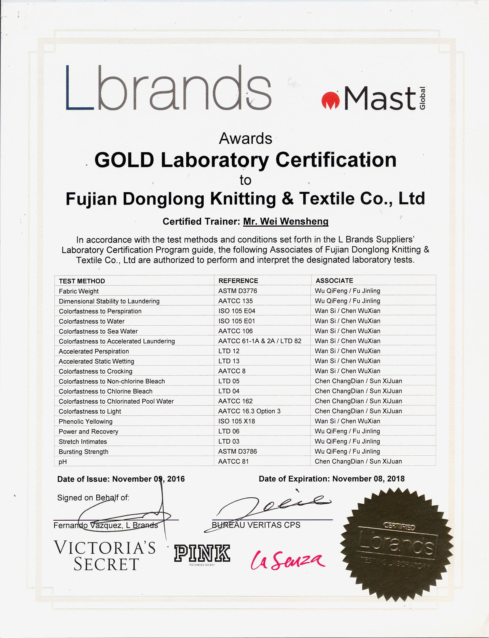 BV金牌實驗室認(rèn)證證書/2018-09-04